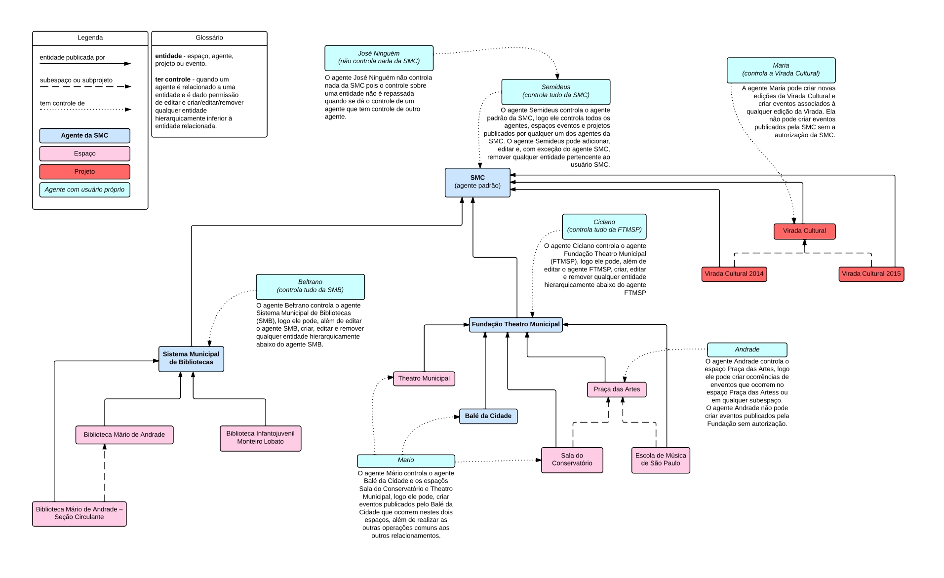EntityAgentRelation: Implementa a funcionalidade de relacionar agentes na entidade. É utilizado por todas as entidades onde é preciso definir administradores para conceder permissão de controle sobre a entidade;